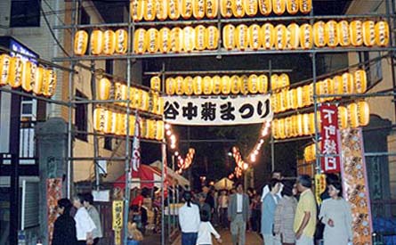 毎年10月中旬(平成13年は10月13・14日)に開催される「谷中菊まつり」は谷中大円寺の祭りである。江戸から明治にかけて行われた団子坂菊人形を地元有志が昭和59年に復活させた。大円寺の境内には江戸時代の絶世の美女・笠森お仙を祭った笠森稲荷があり、そちらで高名な寺であるが、「谷中菊まつり」はお仙と関係ない。