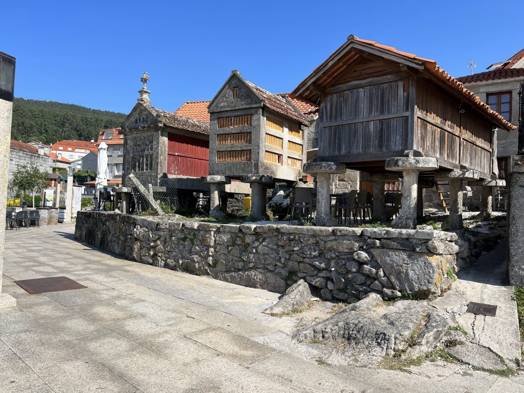 Sightseeing of Combarro,a fishing village in Rias Baixas; The old town has the Hórreo(granary on stilts), the fisherman’s house and the Cruceiro (crucifix), which represent the three traditional architectural elements of Galicia. The Hórreo(Espigueiro in Portuguese)are the same as those from the Soajo village in the Minho region of Portugal, which I visited earlier. In Soajo Village, they are installed on a small hill, while in Combarro they are lined up along the coast. The size and design are slightly different.The old town of CombaroThe old town of CombaroCruceiro is the third of the three traditional Galician architectural elements in the old town of Combarro. Cruceiro is in a slightly open place. In this Cruceiro, it is said that the statue of the Virgin faces the sea and the statue of Christ faces the land, but it is difficult to photograph.