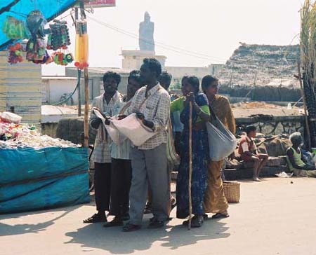 聖地コモリン岬を祈りながら行進する巡礼集団(1.Jan.2003.@Cape Comorin)