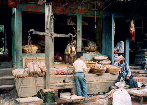 市場の近くのお店。野菜が豊富だ(カトマンズ)