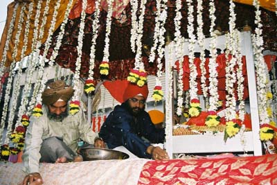 パレードのなかでもっとも尊敬を集めていたブース。信者に飴を配っていた。(1/5/04,オーランガバード)