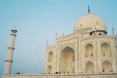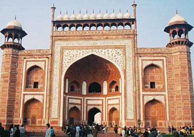 インドを代表するタージマハール廟に向かう門。神像は一切ない。(12/30/03, アグラ) |