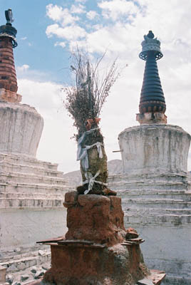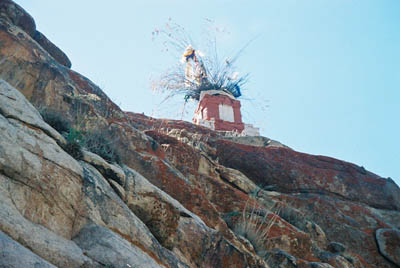 チベット仏教の世界(依り代 左:2004/07/27.スピトックゴンパ 右:2004/07/28.タクトゴンパ チベット仏教とは、インドからこの地に仏教が伝播する前から人々の信仰を集めていた、呪術系、魔術系の原始宗教と仏教が融合したものと言われている。そのため、自然宗教の趣が強い。