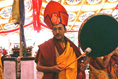 タクトクツェチュ祭(2004/07/28.タクトクゴンパ) 祭の開始を告げる音楽隊のような一団。