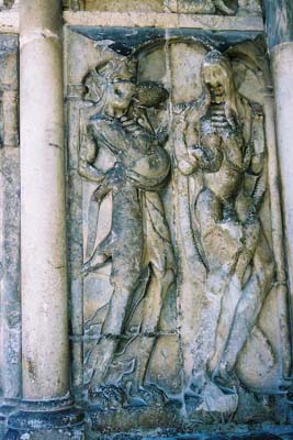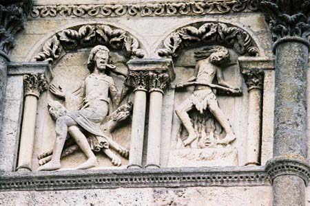| キリスト教に悪魔はつきものだと私達は思っているが、それが具体的なイメージを伴って視覚化したのは、ロマネスクの時代になってからだと指摘する学者もいる。 ロマネスク美術のタンパンには、地獄や、貪欲・淫乱といった人間が犯す罪のイメージが積極的に描かれている。 聖書や聖人と対比的な悪魔・地獄・罪障が視覚的に登場することにより、 中世の人々はキリスト教信仰に大いに目覚めたことだろう。 |