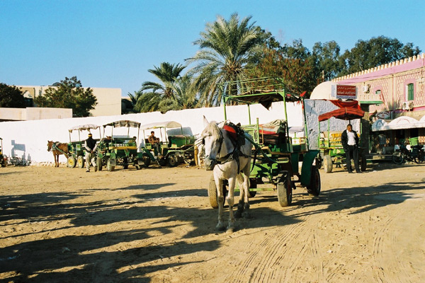 オアシスの畑の中を馬車で巡るツアーがある。