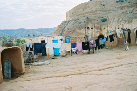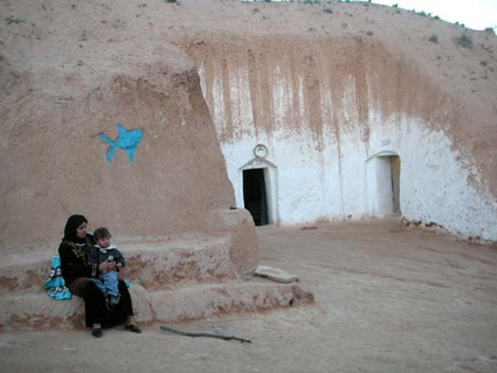 ベルベル人の民家。壁面に描かれた魚はキリスト教のシンボル。