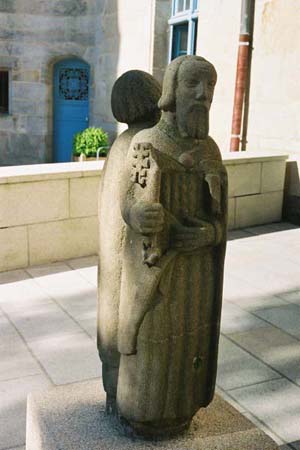 ケルト文化は、ヨーロッパにあって、地中海世界(ギリシア・ラテン)及びキリスト教の影響が少ない。それらの支配を受ける前のヨーロッパの姿、すなわち、原始ヨーロッパの面影をとどめているように思える。また、ケルトの原始宗教はキリスト教のような一神教ではなく、万物に神が宿るという自然信仰だ。もちろん、後年、キリスト教との融合が進んだけれども−−。ケルト美術も、地中海起源とは別系統で、事物の写実よりはその抽象化、そこからの飛躍が著しい。ケルト文化の特徴を、自然信仰、偶像崇拝、理性的写実に縛られない自由な想像力−−と、まとめることができるかもしれない。ブルターニュには、そうしたケルト文化の面影が残っているように思える。 |