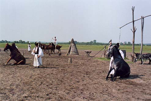 | ハンガリーについては、さらに、西欧の基層文化の一つといわれる騎馬民族への思い入れが重なった。スキタイである。スキタイの原郷は中欧よりも東、ウクライナあたりだといわれているが、彼らはインド=ヨーロッパ語を話す騎馬民族で、いまからおよそ5千年前にヨーロッパに侵入したインド=ヨーロッパ語族の一派だと考えられている。現在、インド=ヨーロッパ語系の諸語を話すヨーロッパ人は、スキタイを含む騎馬民族と、農耕民である原ヨーロッパ人の混血であるという推測もある。 |